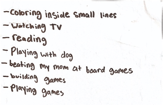 FUN – encourage them to make a list of fun activities they would like to do with and without your help.